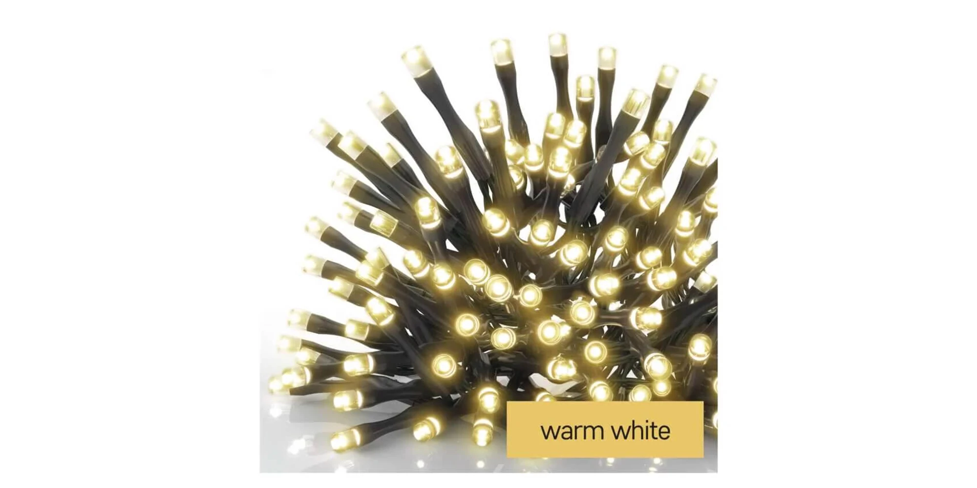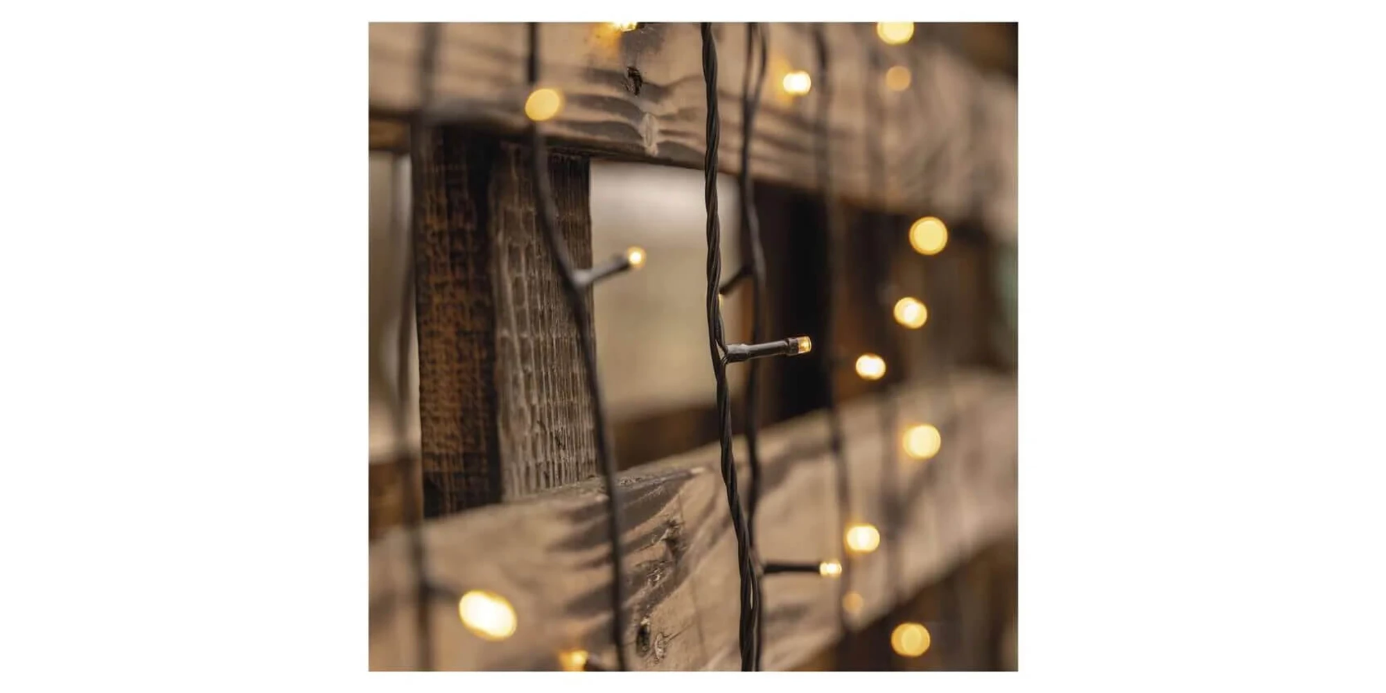 Cu șirul luminos 100 LED-uri, 10 m, alb cald, IP44, D1AW01, EMOS, aveți posibilitatea de a crea o atmosferă de basm în jurul dumneavoastră, cu un sistem de iluminat versatil și ușor de extins. Transformați-vă casa într-un peisaj luminescent care va aduce bucurie și căldură în timpul sărbătorilor de iarnă.