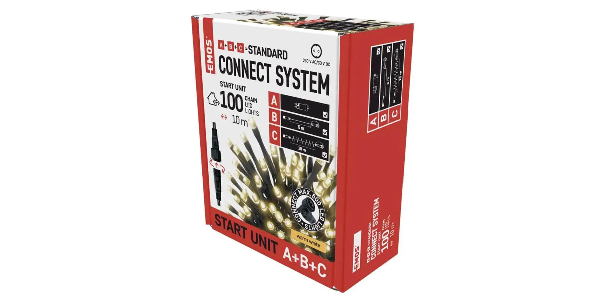 Sir luminos 100 LED-uri, 10 m, alb cald, IP44, D1AW01, EMOS | 62930199 | 86,42 Lei | Decoratiuni de Craciun | Confort prin instalații de calitate | Melinda InstalSpecificații tehnice