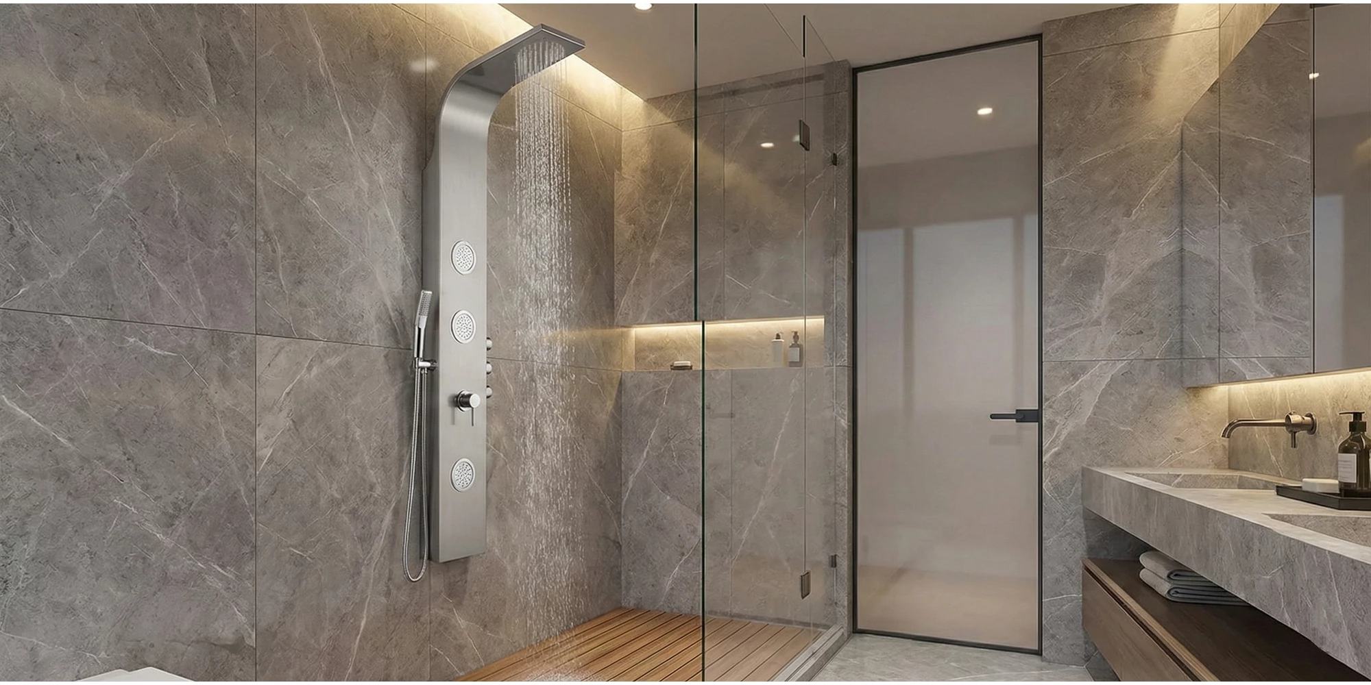 Baia ta nu mai este de mult doar un spațiu funcțional – aici îți începi dimineața și îți închei ziua. Dacă îți dorești câteva minute de relaxare adevărată, o coloană de duș bine aleasă poate transforma cabina sau cada într-un colț de confort. Coloană de duș cu panou inox GLADYS, model 20320332, este gândită exact pentru asta: să îți ofere un duș plăcut, cu jeturi de masaj și mai multe funcții, într-un singur sistem compact.