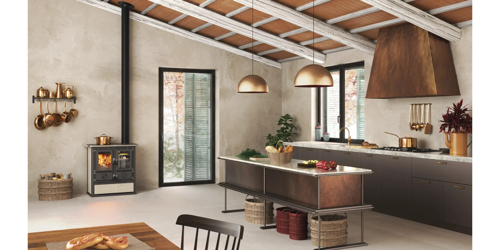 Soba de gatit cu plita si cuptor pe lemne, 7.9 kW, pentru 226 m³, ROSETTA 5.0, Bordeaux, La Nordica-Extraflame