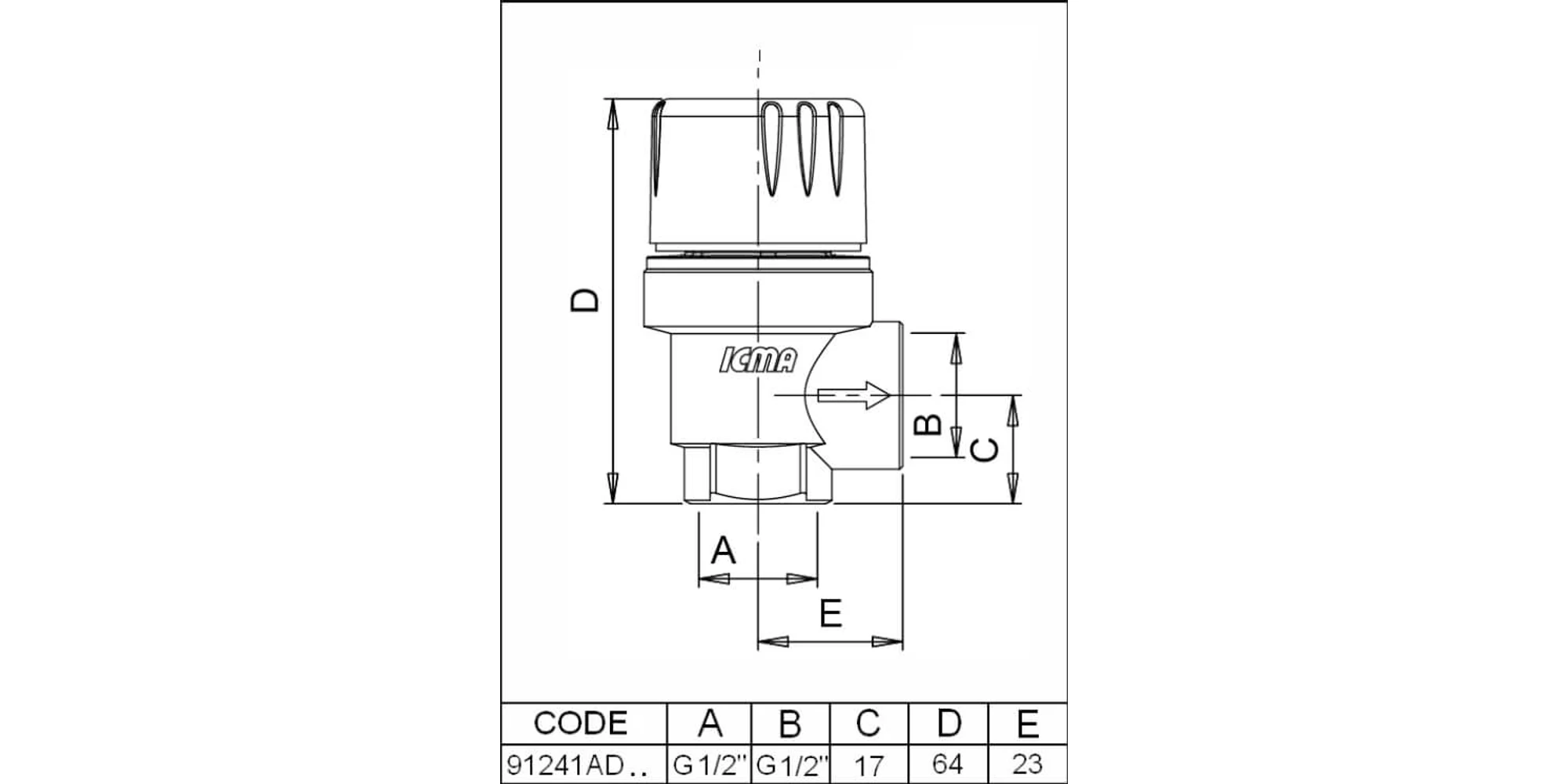 Supapa de siguranta 1/2", 2.5 bar, 91241ADAE ICMA | 10820603 | 31,08 Lei | Supape de siguranta pentru instalatii de incalzire | Confort prin instalații de calitate | Melinda InstalSpecificații tehnice