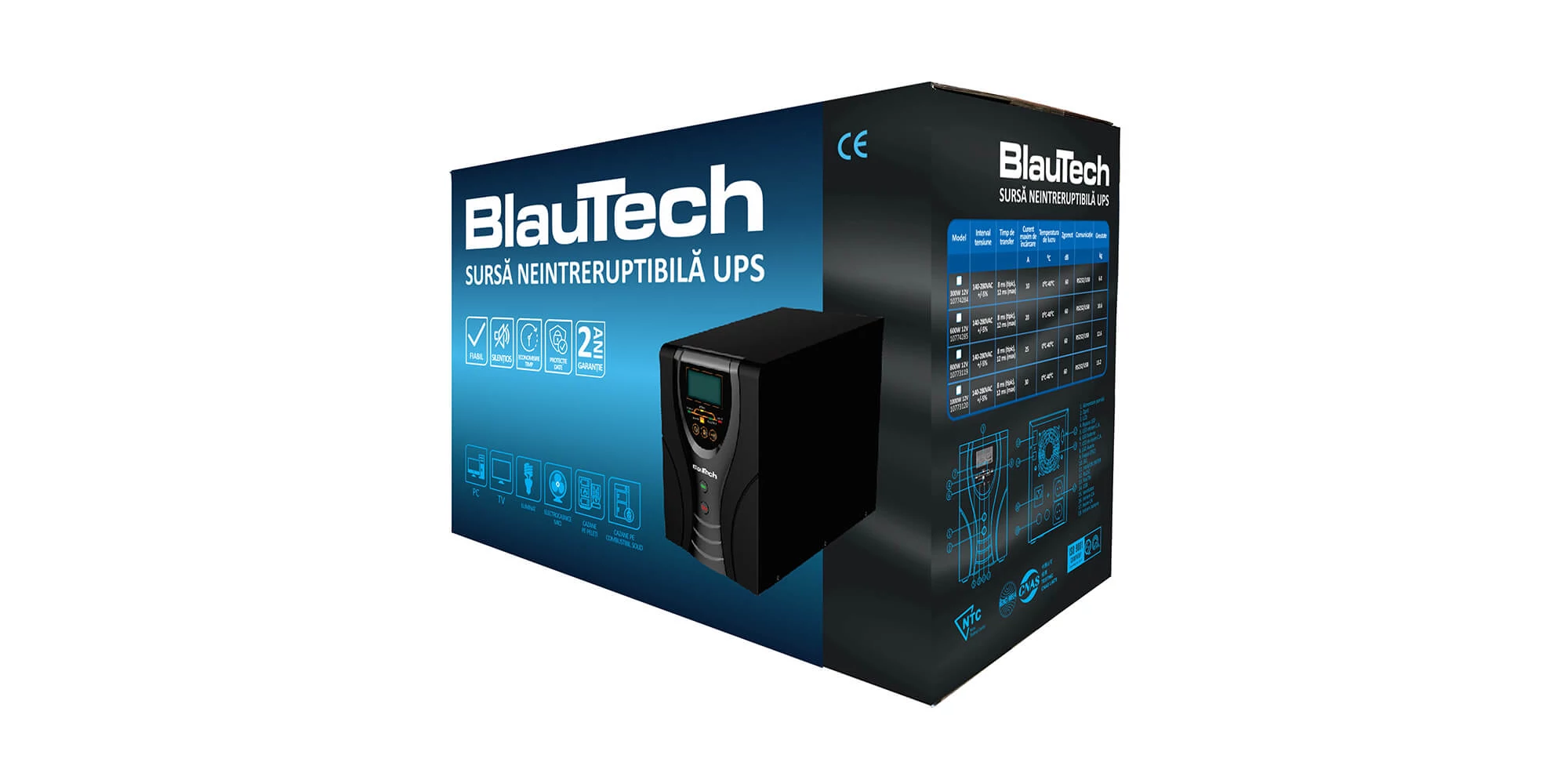 Sursa neintreruptibila, cu unda sinusoidala pura, 800W, 12V, 25A, BlauTech | 10773119 | 955,79 Lei | Surse neintreruptibile | Confort prin instalații de calitate | Melinda InstalSpecificații tehnice