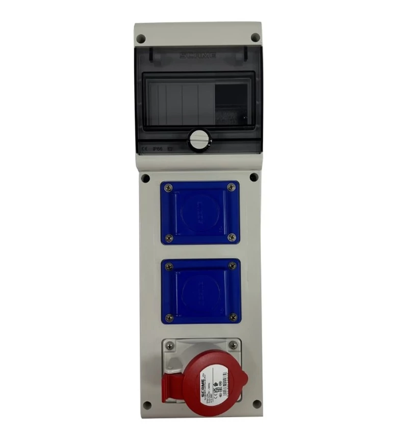 Echipat cu 2 prize monofazice schuko și o priză trifazică |