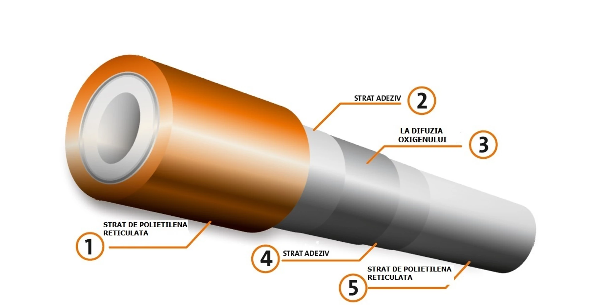 - protectia completa a barierei la difuzia oxigenului cu un strat PE-X interior si exterior (cu coeficienti de dilatare si de conductivitate termica identici)