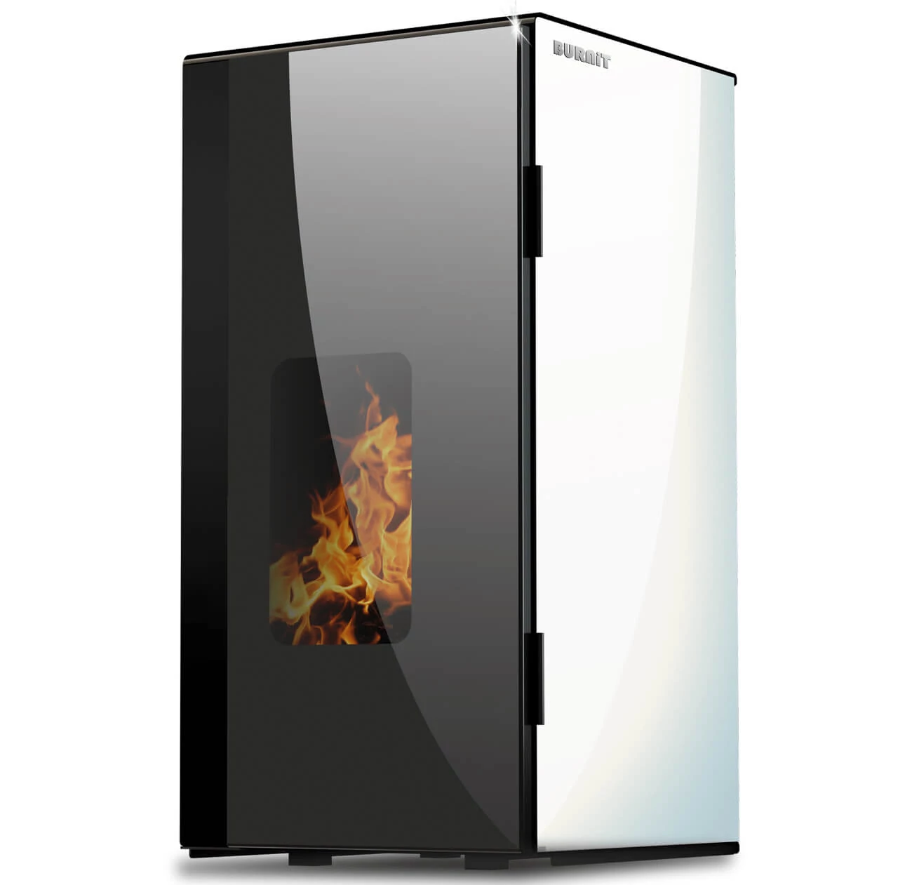 Termosemineu pe peleti, tip centrala, din otel, BURNiT VISION-NOVATION alb 25 kW, echipata cu pompa de circulatie, vas de expansiune, automatizare, suprafata pana la 160 metri patrati