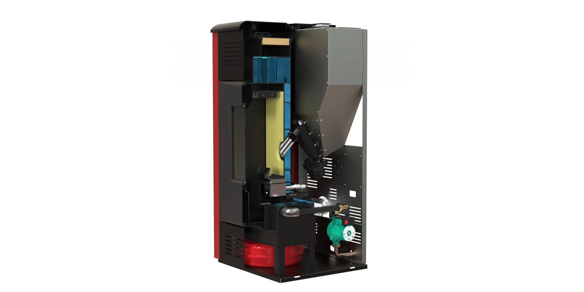 Termoșemineul pe peleți, tip centrală, din oțel, Thermasis Hydra HD, 16 kW are control și aprindere automatizată. Este dotat cu sistem anti incendiu pentru protecția peleților din rezervorul de peleți.