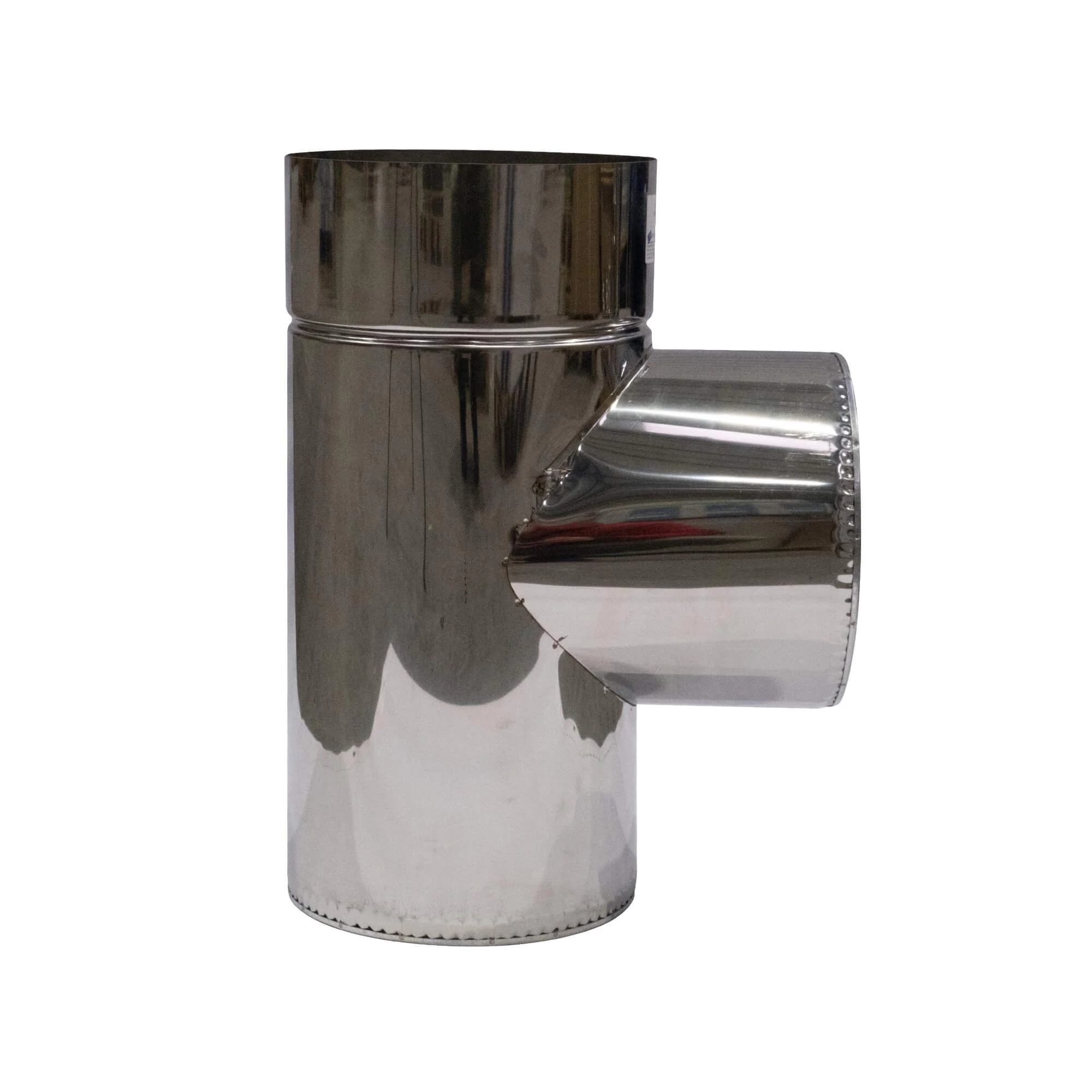 Teul inox DP 90 grade D160 / 220 ECO 0.5 mm este un element de racordare a coșului de fum la focar. La interior are ca element de protecție o aripioară de deviere a condensului către capacul de condens - nu permite condensului să se prelingă spre focar. Peretele interior este realizat prin profilare la rece a elementului vertical - nu prin decupare și sudarea elementului orizontal, ceea ce conferă o rezistență mult crescută la compresiune - pe teu apasă întreaga greutate a coșului.