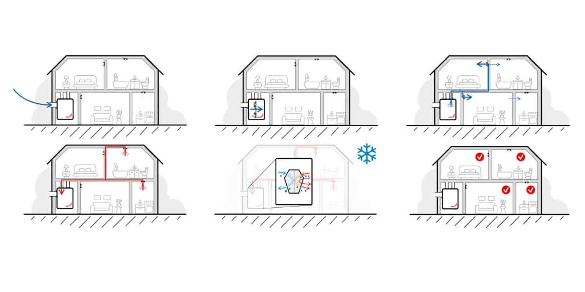 - Opțiunea de răcire ulterioară ComfoCool Q600 pentru dezumidificare și răcire ulterioară a aerului.