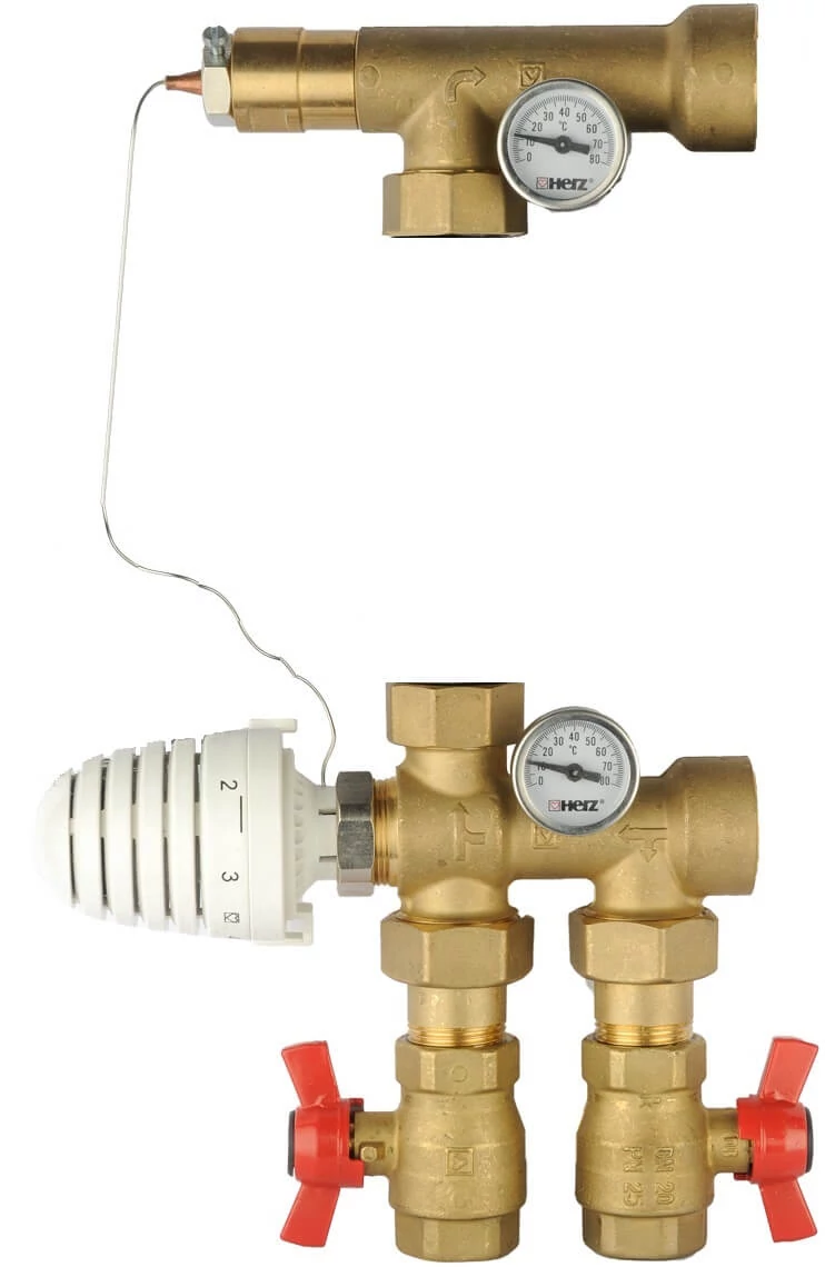 Unitatea reglare temperatură HERZ 1732007, fără pompă de recirculare este folosită în sisteme de încălzire cu înaltă temperatură, în cazuri când există nevoia de încălzire a unui circuit de încălzire adițională cu temperatură mai joasă.